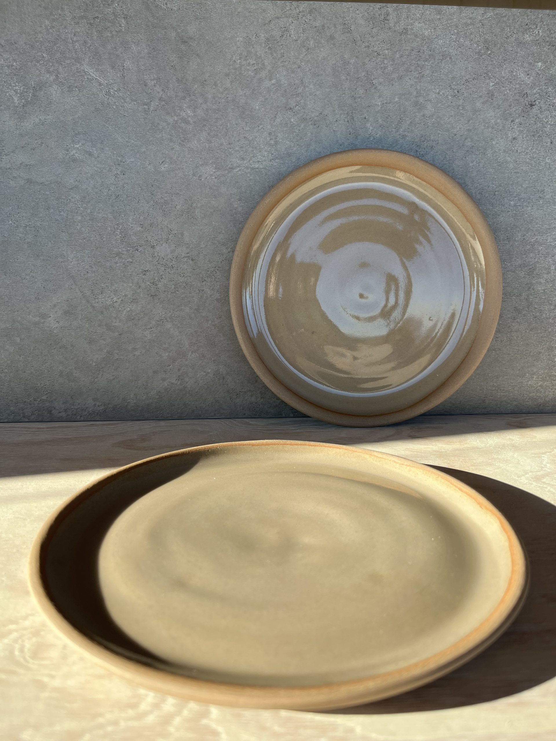 Handgedrehter Frühstücksteller aus braunem Ton, Durchmesser 20 cm
