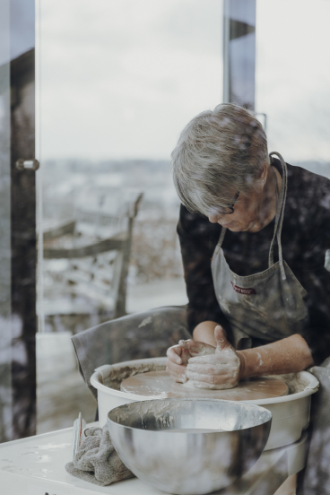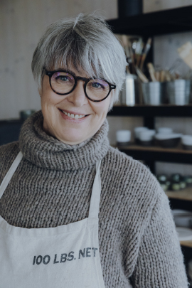 Auf Umwegen und nach vielen Jahren als selbständige Innenarchitektin traf ich vor etwas mehr als 4 Jahren zufällig auf eine Keramikerin, die mir das Töpfern auf der Scheibe beigebracht hat. Ich wollte schon immer einmal den Prozess des Töpferns auf der Scheibe ausprobieren, fühlen und sehen, wie aus einem Stück feuchter Erde ein Gefäß entsteht. Anders als in der Innenarchitektur gibt es hier keinen Plan auf Papier, es entsteht die Form beim Sitzen hinter der Töpferscheibe. Dieses unmittelbare Kreieren und Erschaffen ist, was mich glücklich macht.